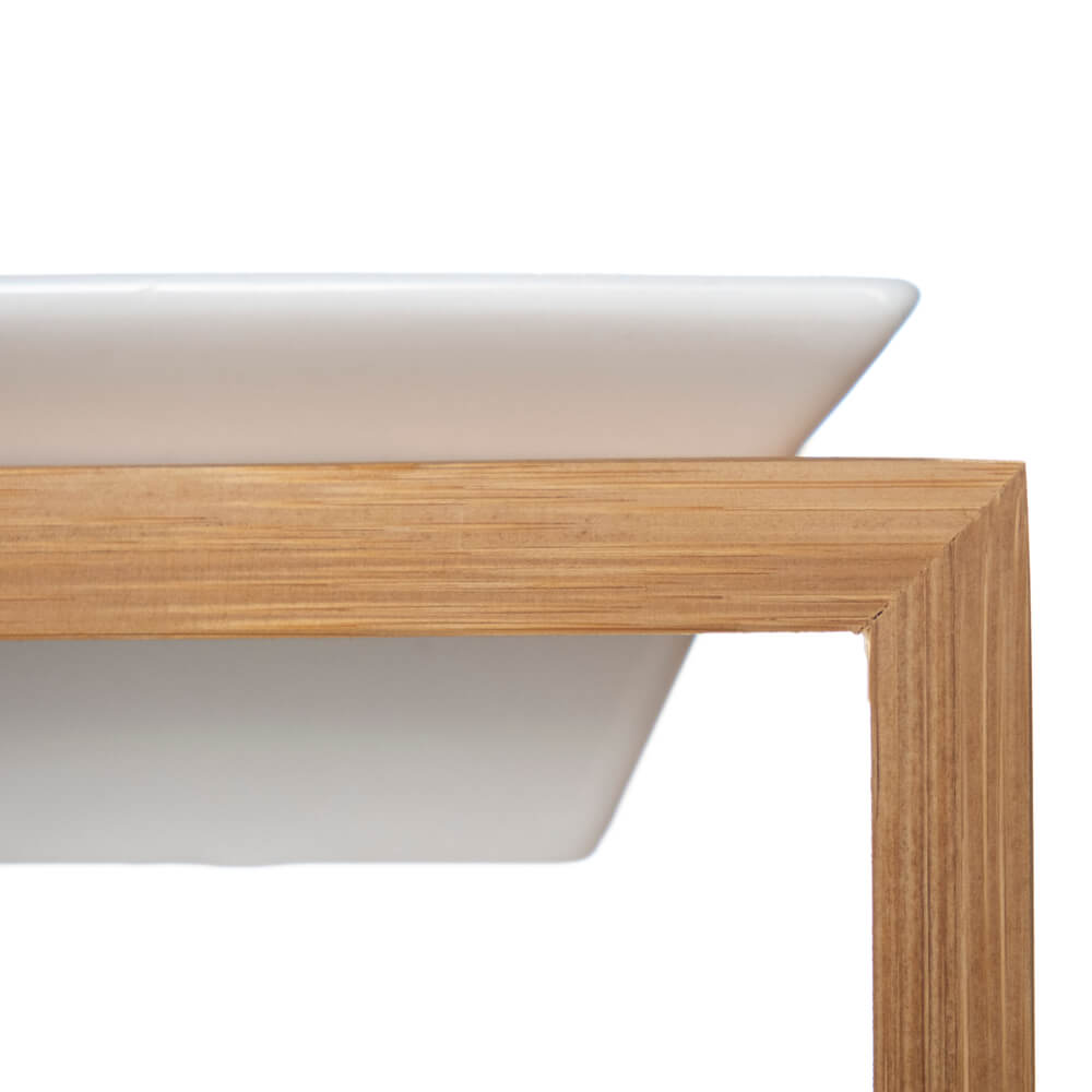A fragrance fireplace made with a bamboo base and a ceramic bowl for oil or wax is a traditional way to diffuse scents in a room, as well as a unique decorative element for the room. The combination of pure white and natural brown will fit into any type of interior and give a cosy atmosphere and a unique flair.