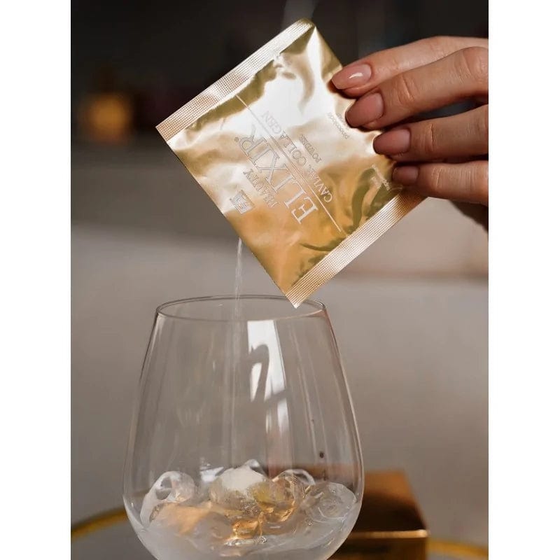 Fitness Authority Beauty Elixir Caviar Collagen is a dietary supplement powder. Patented seawater fish collagen Peptan® F, sourced from France, was used in the production of Beauty Elixir Caviar Collagen. Hydrolysed Peptan® F collagen is a fish collagen peptide with over 90% bioavailability by the body. The product contains as much as 6500 mg of Peptan® F, caviar extract, hyaluronic acid, as well as other ingredients which have a positive effect on the body, including vitamin C, which helps in the proper production of collagen, zinc and selenium. All of this creates a unique combination of active ingredients in a convenient, soluble form.