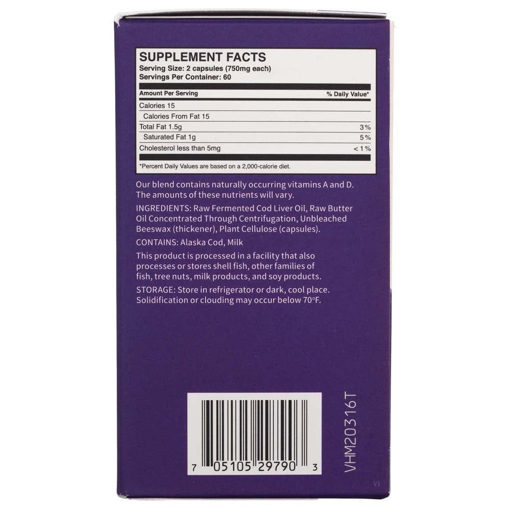 Raw Fermented Cod Liver Oil, Raw Butter Oil Concentrated Through Centrifugation, Unbleached Beeswax (thickener), Plant Cellulose (capsules).