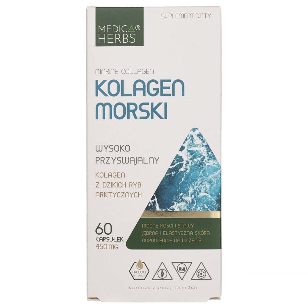 Marine Collagen from Medica Herbs, is a dietary supplement in capsules containing collagen extracted from the skins of marine fish. Collagen is a naturally occurring protein in the human body, which is one of the essential components of connective tissue. It supports the natural regeneration of joint cartilage, thus supporting the proper functioning of joints.