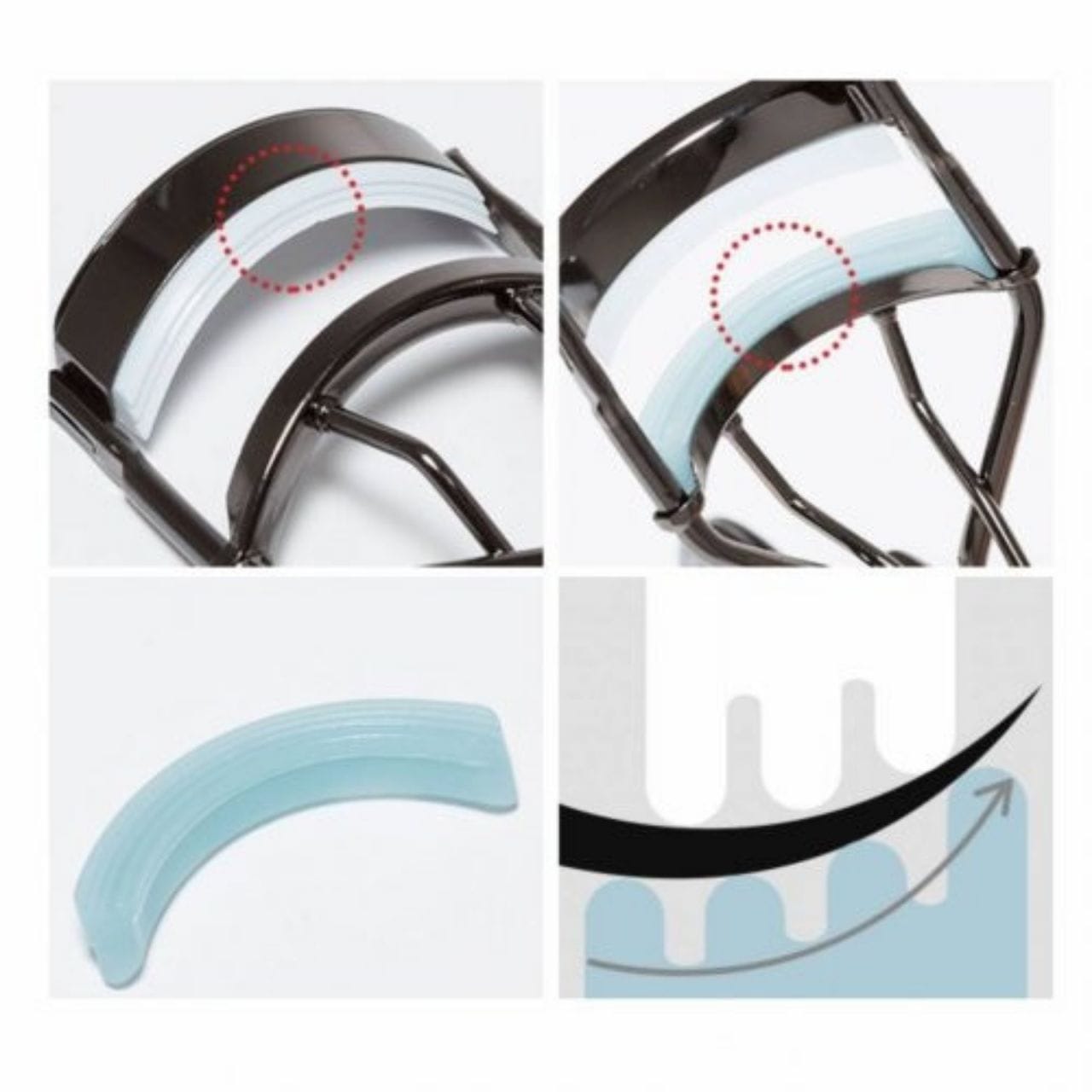 - Three-wave curler – curls lashes at three points, eliminating the risk of a right-angled bend.