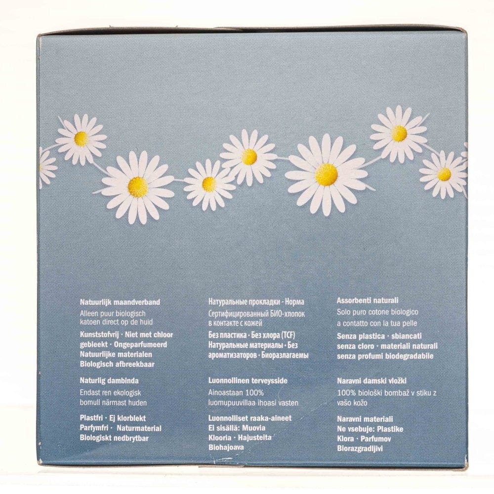 Contains no plastic, chlorine, artificial silk, latex, chemical additives, fragrances or dyes. Certified organic and absorbent cellulose core blocks menstrual fluids to keep you dry, while soft, organic cotton allows skin to breathe.