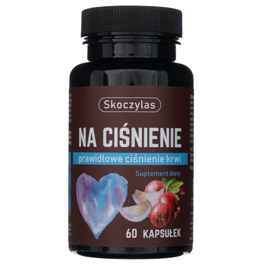 The dietary supplement Na Ciśnienie brand Skoczylas contains potassium, which helps to maintain normal blood pressure. Hawthorn, which supports the function of the heart and cardiovascular system. Chokeberry and garlic, which have antioxidant properties.