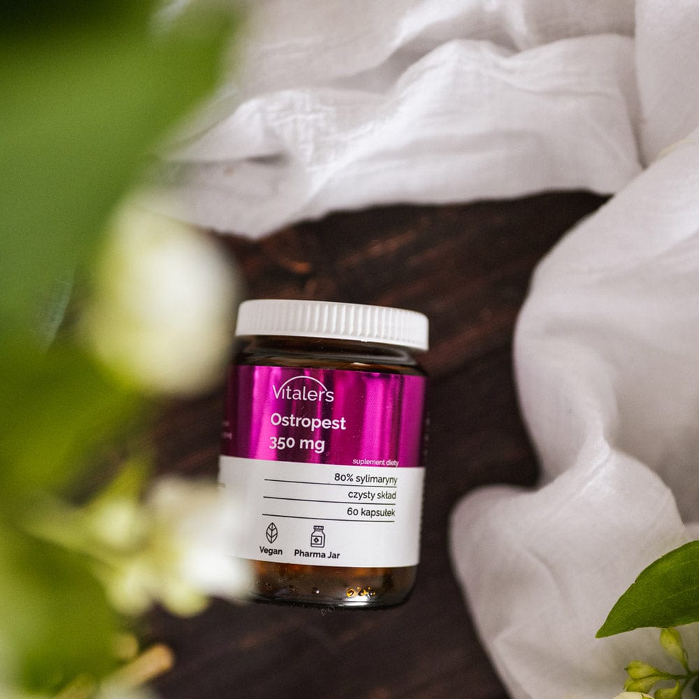 Thistle (Silybum Marianum ) is a medicinal thistle used in traditional herbal preparations. Its seeds help maintain normal liver functions responsible for digestion and cleansing processes. Thistle has valuable phytochemicals such as silymarin, quercetin, apigenin, triterpenes. Silymarin is a complex of compounds of plant origin, which is characterized by a very broad spectrum of action - it contributes to maintaining the liver in normal condition, has a protective and regenerative effect on liver cells. Silymarin has strong antioxidant properties. Vitaler's Milk Thistle contains 60 vegan capsules, which translates into 60 days of supplementation. The formula is standardized to an extract of 350 mg with 80% of silymarin per capsule.