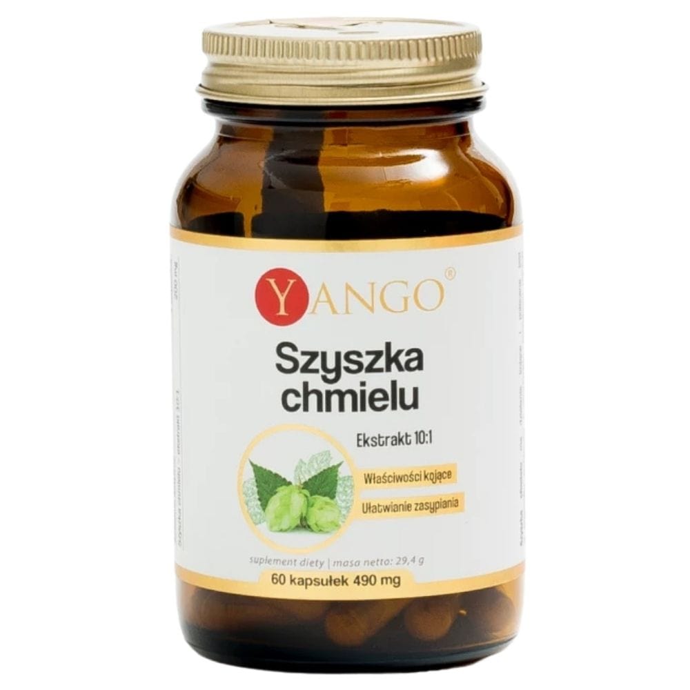 Hops cone by Yango, is a dietary supplement in capsules containing hops cone extract.